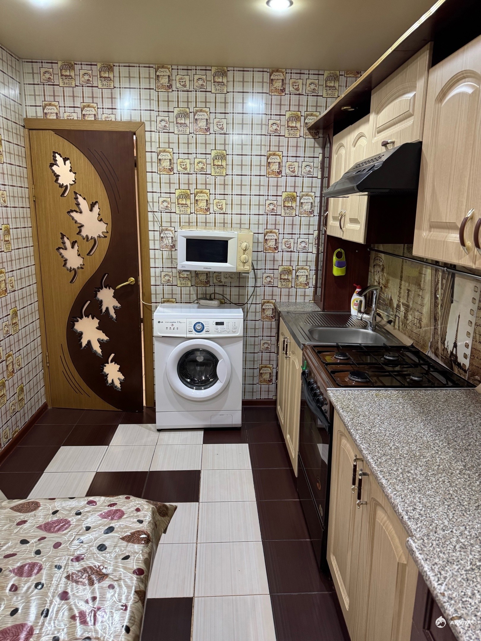 техника для комфортного проживания - холодильник, TV, стиральная машинка, новый кухонный гарнитур с встроенной техникой.