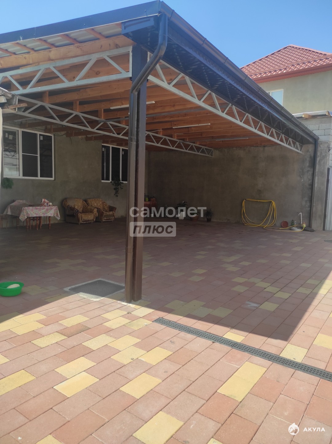Двор просторный, огорода нет, канализация центральная.