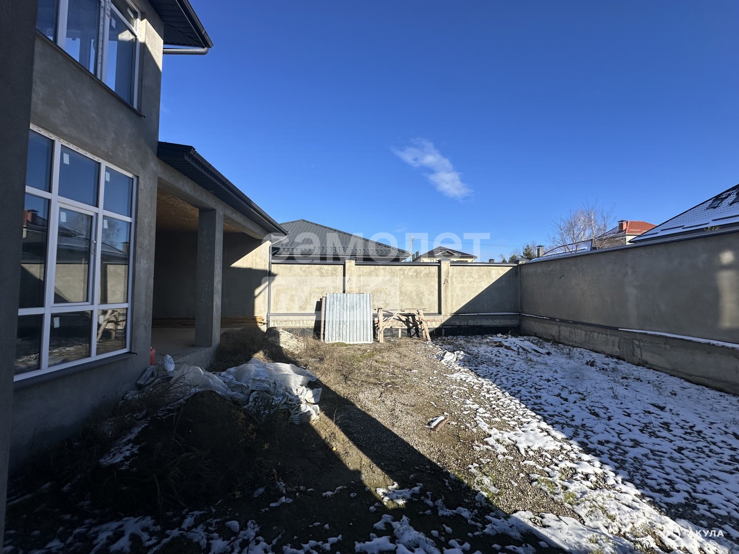 - По периметру дома возведён высокий трёхметровый забор из блоков, гарантирующий приватность и безопасность.