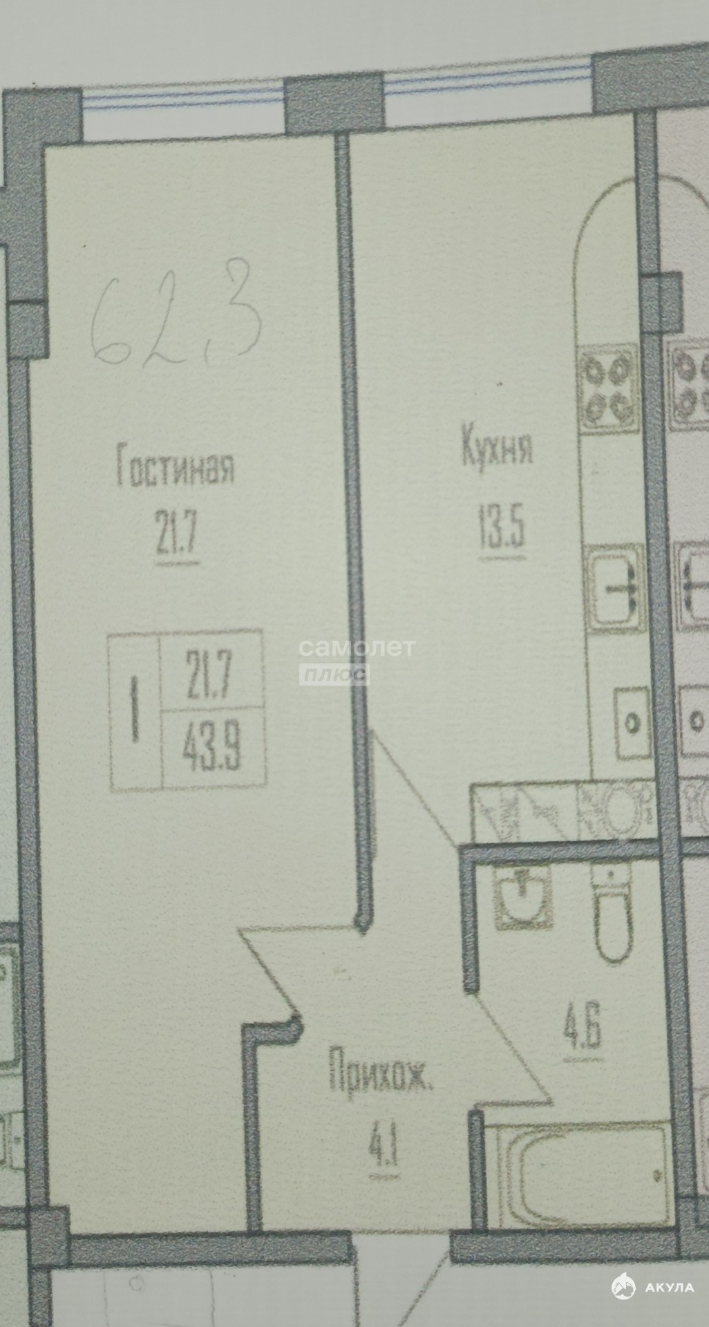 - 44 м²