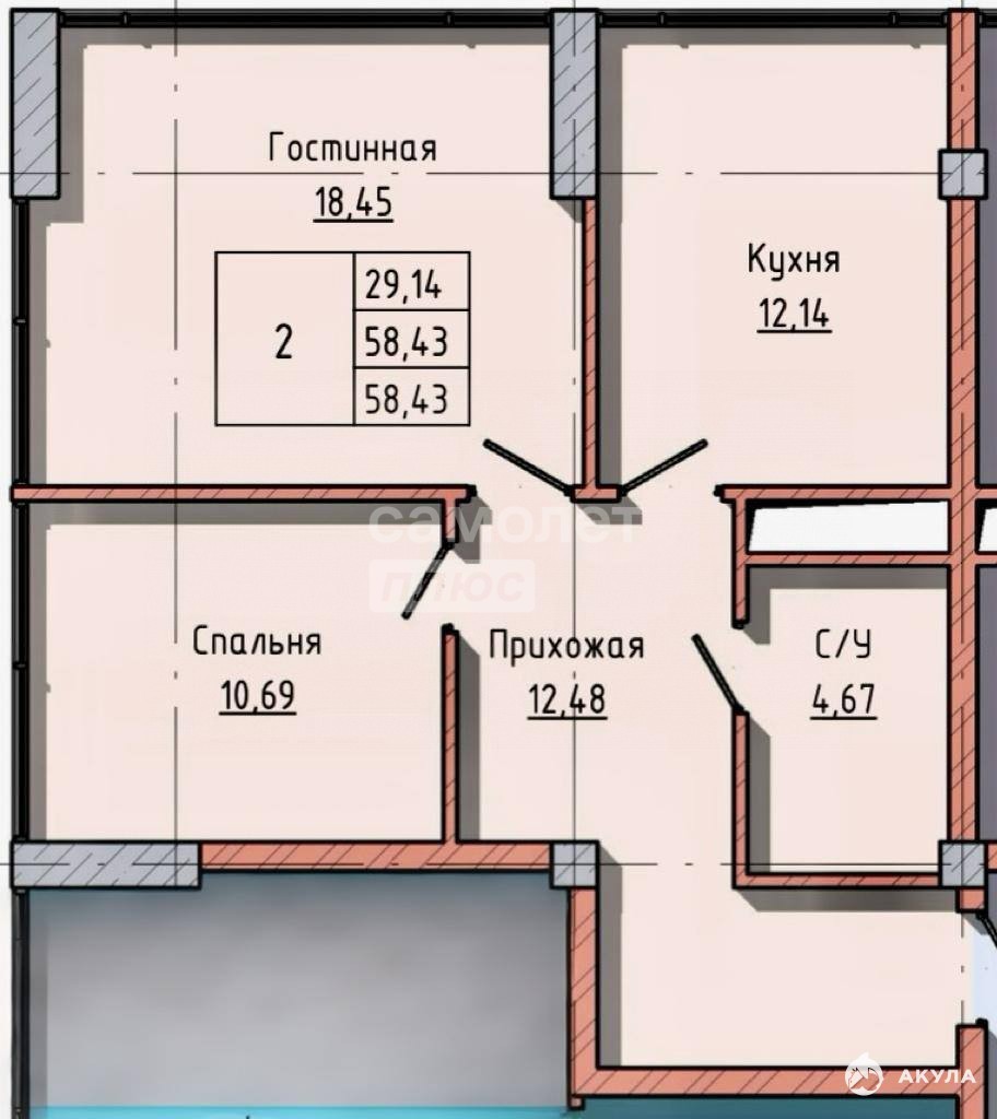 - 58 м²