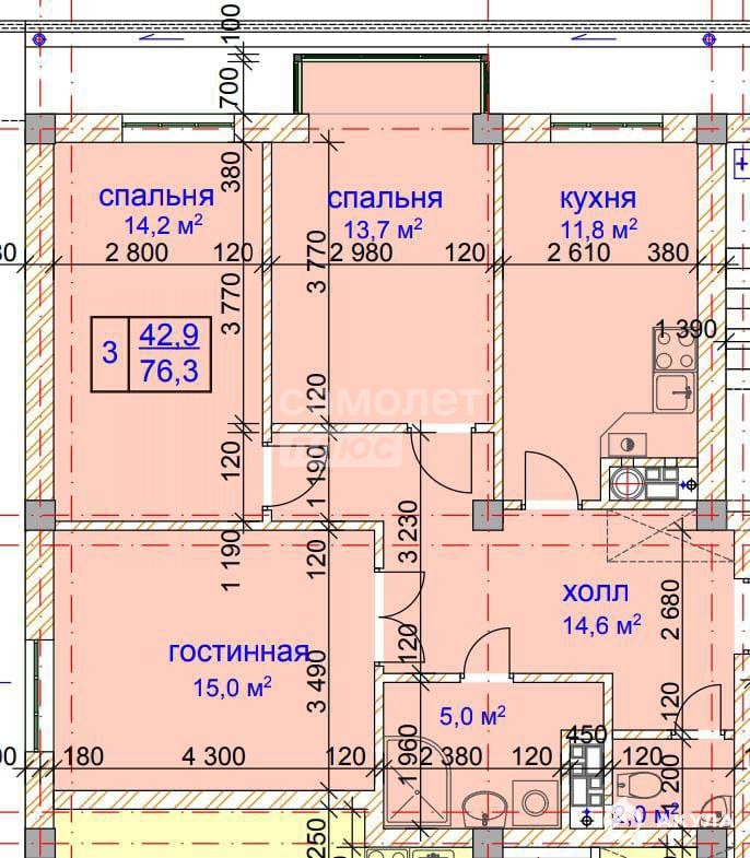 - 42.9 м²