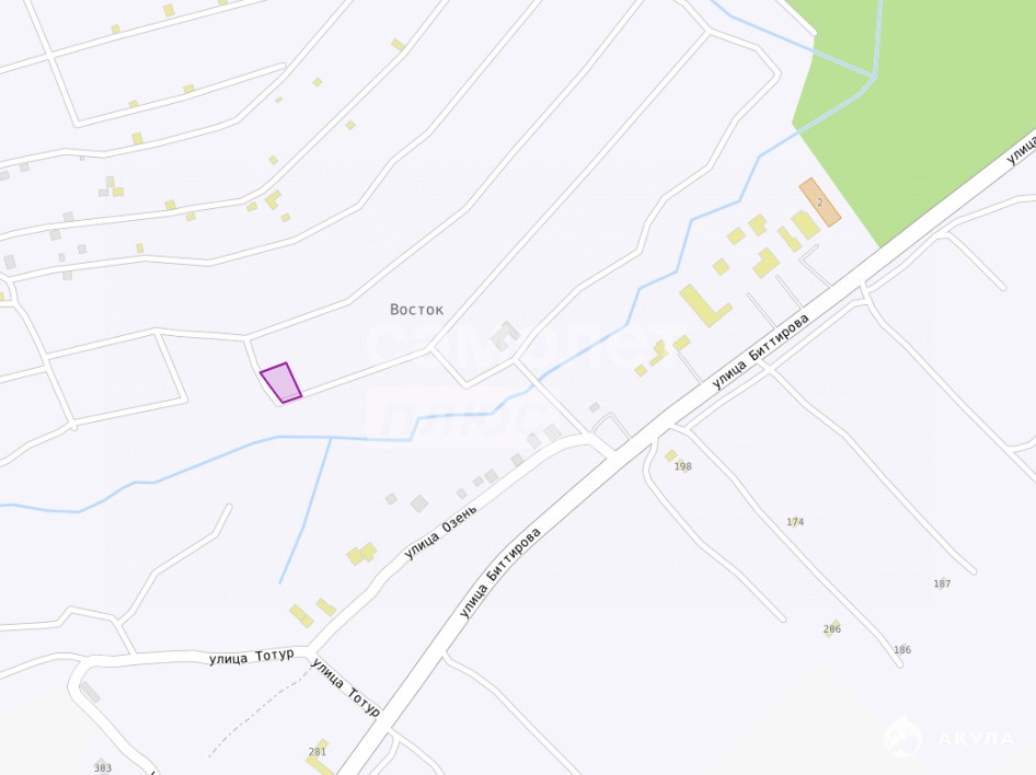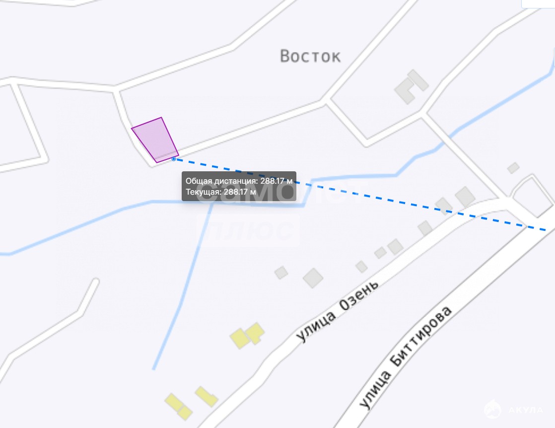 Площадь участка составляет 7 соток. Участок ровный, прямоугольной формы (22 х 32 м), угловой, расположенный всего в 290 метрах от ул. Биттирова.